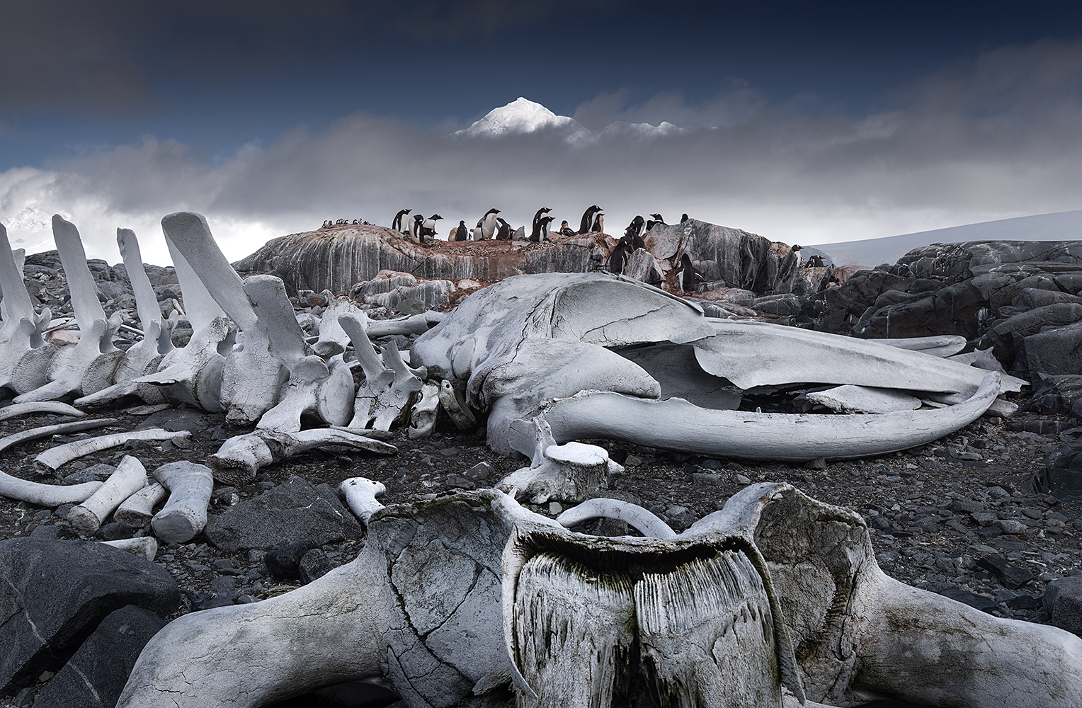 W nocy docieramy do Port Lockroy, ale z powodu zachmurzenia przepada nam wschód słońca. Dopiero po śniadaniu ruszamy zodiakiem na ląd, do miejsca gdzie leży szkielet wieloryba i są duże kolonie pingwinów białobrewych. Spędzamy na wyspie około 2-3 godziny fotografując kości oraz ptaki z widokiem na ośnieżone szczyty i lodowce. Znajdują się tutaj doskonale zachowane, duże fragmenty szkieletu wieloryba leżące na wolnym powietrzu. Szczątki nie są muzealną ekspozycją, tylko naturalnie zachowanym szkieletem pozostawionym tam, gdzie zwierzę zdechło lub zostało porzucone przez wielorybników. Widoczne elementy – żuchwa, kręgi, żebra, wskazują na dużego walenia, najczęściej identyfikowanego jako płetwal błękitny lub humbak. Na Antarktydzie kości potrafią zachować się w bardzo dobrym stanie przez dziesiątki, a nawet setki lat. Zgodnie z panującymi na Białym Kontynencie zasadami nie wolno ich dotykać ani przestawiać; są traktowane jako element środowiska i dziedzictwa historyczno-przyrodniczego.