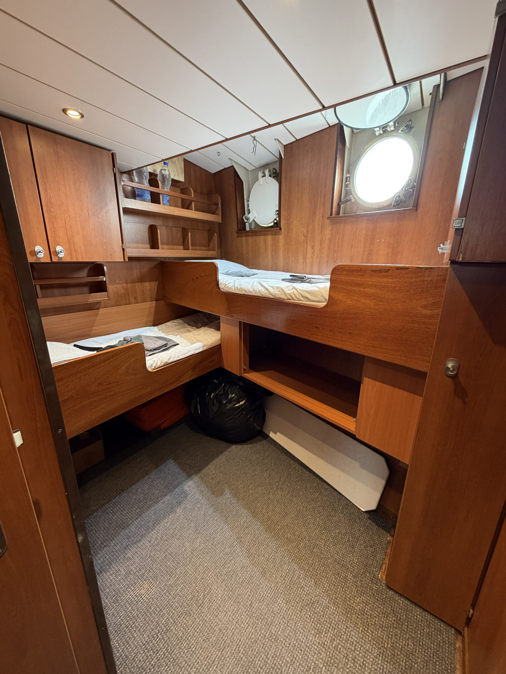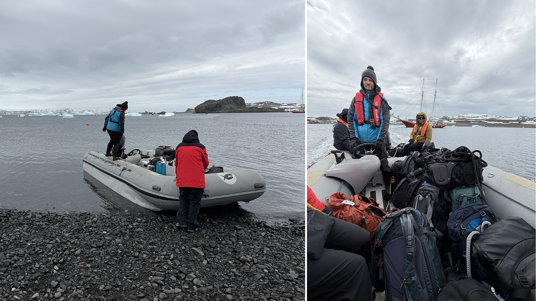 Przenieśliśmy bagaże na ponton zodiak, którym w kilka minut dopłynęliśmy do jachtu, zacumowanego kilkaset metrów od brzegu. Jachty nie mogą podpłynąć do brzegu, bo nie ma tu żadnej przystani. Załoga wniosła nasze bagaże na pokład i mogliśmy wprowadzić się do kajuty, która była naszym domem przez następne 10 dni. Zamieszkaliśmy na jachcie Elsi, a druga grupa na jachcie Tolkien. Obydwa jachty to prywatne szkunery, które mają stalowe kadłuby, daleki zasięg i dają sporą autonomię, dzięki czemu świetnie nadają się do eksplorowania Antarktydy. Każdy jacht jest wyposażony w dwa zodiaki (sztywne pontony o dmuchanych burtach), które spełniają kluczową rolę w dotarciu do trudno dostępnych miejsc, nawigacji na płyciznach oraz do dotarcia tam, gdzie większy statek nie dopłynie, czyli prawie wszędzie. Antarktyda jest niemal całkowicie dzika, brak tutaj przystani i nabrzeży, więc bez zodiaków dopłynięcie gdziekolwiek byłoby niemożliwe. Po zakwaterowaniu na jachtach odbył się pierwszy briefing odnośnie życia na pokładzie oraz bezpieczeństwa.