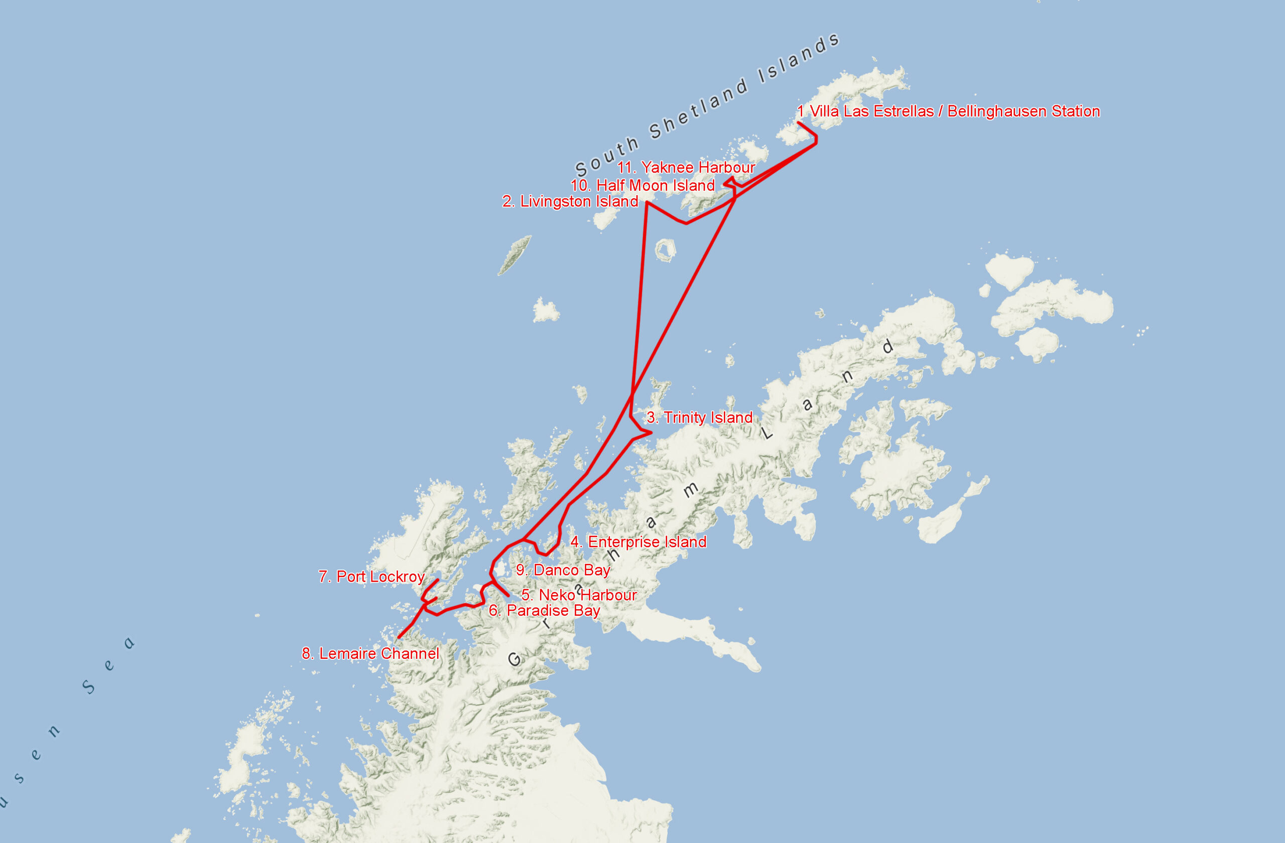 Wyprawa była podzielona na dwa główne obszary: Szetlandy Południowe (tu znajduje się lotnisko, na którym lądowaliśmy na King George Island) oraz oddzielony od Szetlandów Pd. Cieśniną Bransfielda Półwysep Antarktyczny.